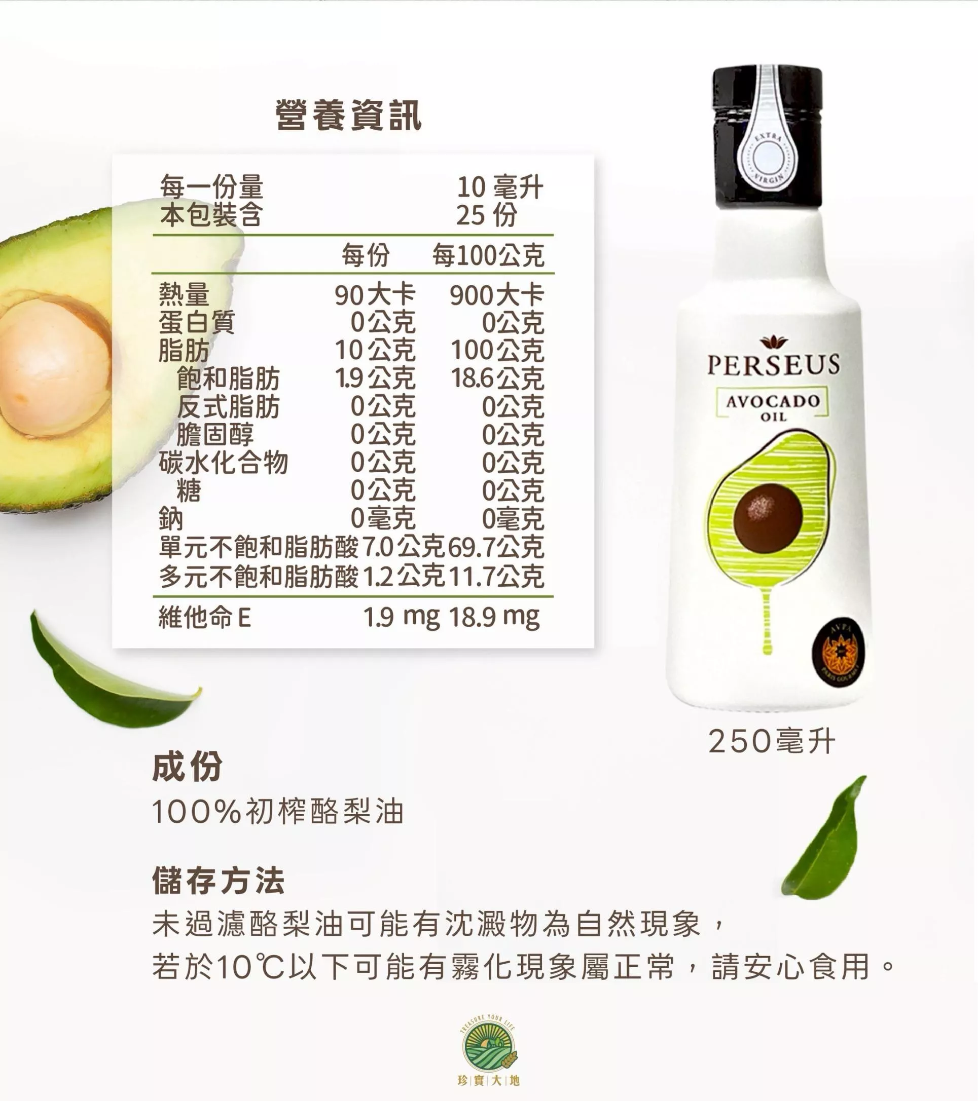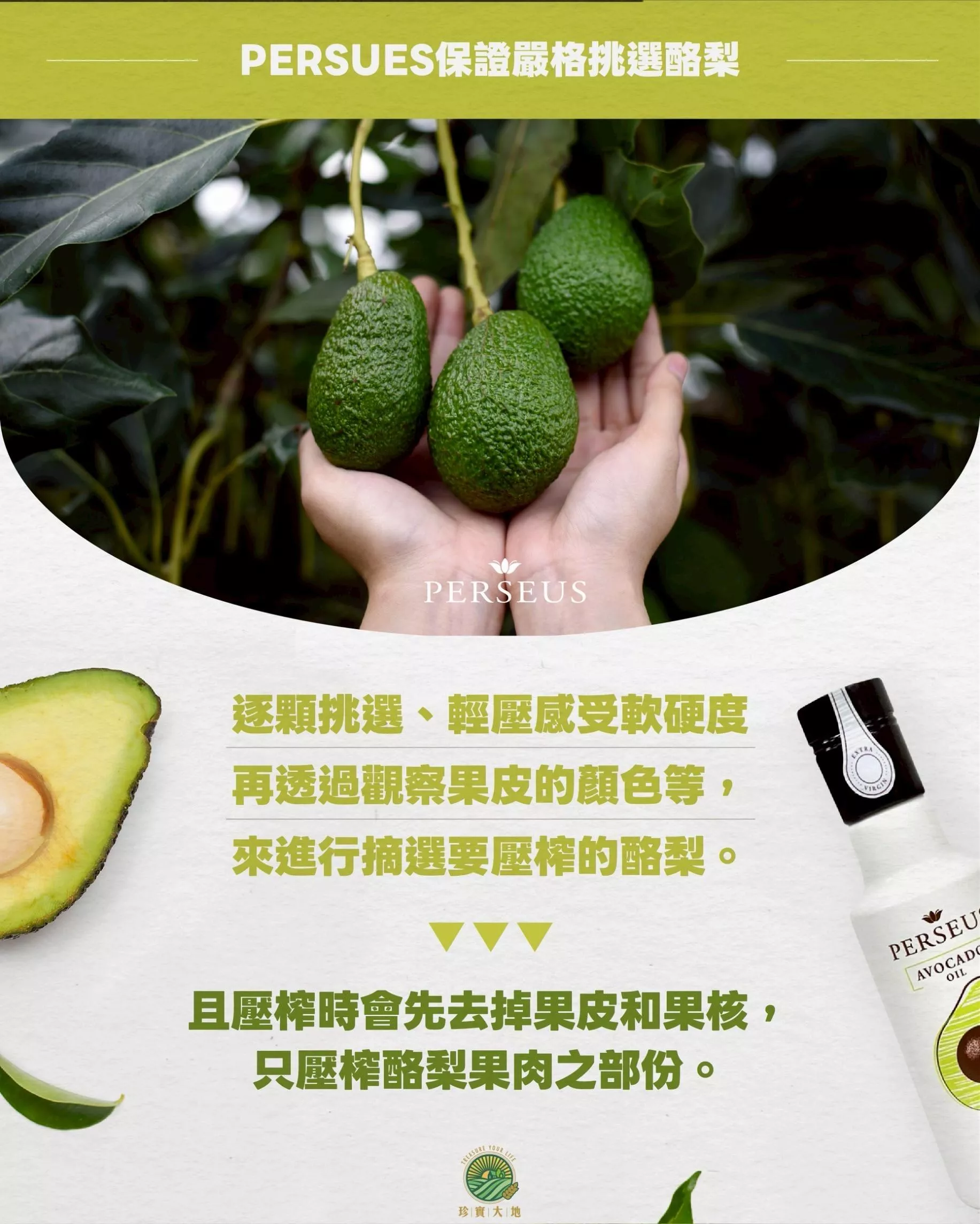 ・冷壓低溫工法:以低溫冷壓萃取方式,保留完整營養與酪梨本身的香氣、翠綠色澤。